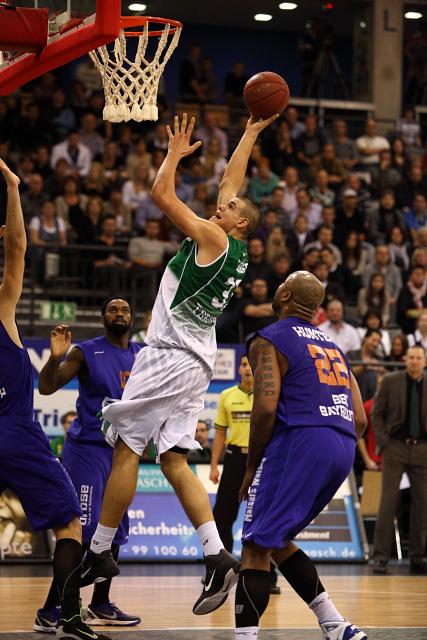 In die BBL war der Holländer gewechselt, weil ihn die Aufgabe reizte, in einer deutlich stärkeren Liga als der niederländischen Verantwortung zu tragen. Wie schnell, wie athletisch und körperlich robust das Spiel hierzulande ist, davon konnte sich van den Berg gleich in den ersten zehn Minuten überzeugen. Trier hatte in Göttingen genug Selbstvertrauen getankt, um auch das Spiel gegen die Franken mit breiter Brust zu beginnen. Zudem nähert sich Philip langsam, aber sicher seiner wahren Form an. Der Nationalspieler hat das rechte Sprunggelenk zwar immer noch dick bandagiert, stand aber wie schon in Göttingen von Beginn an auf dem Parkett.