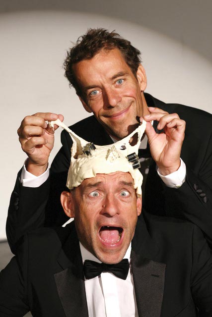 Weil für das Chaos-Theater Oropax schon ab November täglich Weihnachten ist, heißt die Weihnachtsshow, mit der das Duo am Donnerstag um 20 Uhr in der Tufa auftritt, „Der 54. November“. Bei goldenem Lametta und schwarzem Humor bescheren die gedopten Chaos-Brüder Volker und Thomas Martins dem Publikum eine neue Welt zwischen froher Besinnlichkeit und ekligem Konsumterror. Der schlimme Alltag der scheinheiligen Vorweihnachtszeit wird für 90 Minuten pulverisiert. Im Interview mit Thomas Martins wird deutlich, was Oropax auszeichnet: Brutale Wortspiele und wunderbarer Nonsens.