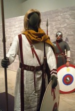 Der nächste Raum widmet sich der Ausrüstung des römisches Heeres und dessen Aufbaus. Die Anzahl und der Zustand der Objekte von Waffen bis zu Ledersandalen mit genagelten Sohlen (extra für lange Märsche) sind beachtlich. Beachtlich ist auch das, was ein römischer Soldat an Gewicht mit sich tragen musste. Komplett ausgerüstet hatte ein Legionär 30 Kilogramm zu schleppen. Die Exponate dieses und des vorherigen Raumes sind aus archäologischer Sicht besonders beeindruckend.