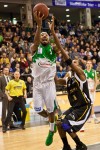 Wieder ein Krimi, wieder ein Herzschlagfinale, wieder knisternde Spannung und große Gefühle: Wie schon gegen Bonn, siegte die TBB Trier am späten Sonntagabend mit einem Punkt Vorsprung. Diesmal mit 75:74 (39:44) über EnBW Ludwigsburg. 3026 Zuschauer in der Arena sahen einen überragenden Maik Zirbes. 22 Jahre jung wurde Triers Nationalspieler am Sonntag. Gespielt hatte er wie ein ganz alter, erfahrener, mit allen Wassern gewaschener Hase. Auch Spielmacher Dru Joyce feierte Geburtstag – seinen 27. Für Zirbes gab es zur großen Sahnetorte das Lob des Trainers als Zugabe. „Es gibt Spieler“, sagte Henrik Rödl mit Hochachtung, „die nehmen ihre Chance an, nutzen sie und entwickeln sich auch noch weiter. Maik ist ein solcher Spieler.“ Ludwigsburgs Trainer Steven Key konnte sich dem Kompliment nur anschließen: „Zirbes war heute für uns einfach nicht zu kontrollieren. Das war der Knackpunkt.“ Die TBB verlässt die Abstiegsplätze, dort ist jetzt Ludwigsburg angekommen.