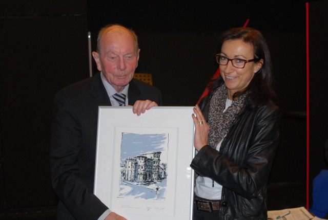 Zum Abschluss der gestrigen Mitgliederversammlung wurde Dr. Carl-Ludwig Wagner, der Vorgänger von Hiltrud Zock, geehrt. 16 Jahre lang hat er sich im Verein und über seine politischen Ämter für das Theater starkgemacht. „Sein Hintergrund als angesehener Politiker hat uns in Trier viele Vorteile verschafft“, sagte Frau Zock in ihrer Rede. „Durch seine guten Beziehungen nach Mainz hat er für das Theater viel erreichen können. So ist es ihm während seiner Zeit als Finanzminister in den 80er Jahren gelungen, dass die Zuschüsse des Landes Rheinland-Pfalz in gleicher Höhe wie die der Stadt Trier ausfielen.“ Seine Spendenaufrufe hätten heute noch Gewicht. So stammt die Finanzierung des Schwingbodens aus Spenden anlässlich seines 80. Geburtstages im vergangenen Jahr.