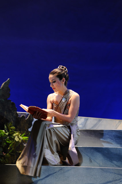 Zum Glück ist das nicht durchgängig der Fall. Nein, es gibt auch eine Szene, in der Anna (Evelyn Czesla) sich derart über den König echauffiert, dass sie aus einem Kissen den König macht, ihn ansingt, auf den Knien zu ihm hinwackelt, mit der Hutnadel auf ihn einsticht und ihn schließlich auf den Boden wirft. Das ist wirklich amüsant. Wenig amüsant ist dagegen die Hinrichtung einer der Frauen des Königs, die flüchten will: Tuptim (Claudia-Denise Beck). Tuptim wurde ihm vom burmesischen König, ihm unterlegen, zum Geschenk gemacht. Aber Tuptim ist anderweitig verliebt [in den wunderschönen und gutgebauten Lun Tha (Luis Lay)]. Das Konzept Liebe unterstützt Anna bedingungslos, hat sie doch selbst einmal die große Liebe erlebt. So wirbt die Lehrerin um Verständnis und meint irgendwie naiv wie vergeblich, der König könne für ein solches Verhalten tatsächlich „Verständnis“ aufbringen.