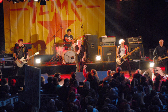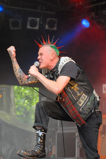 Gleich bei der ersten Nummer dürfen die Fans den schönen Anti-Nazi-Klassiker „Schweinherbst“ mitgröhlen. Es folgen „Sich fügen heißt lügen“ und „Freiheit in Ketten“ vom neuen Album und „Alle gegen alle“ von ihrer dritten Platte. Schon früh zeichnet sich also ab, dass der Geschmack aller Besucher bedient werden soll. Zwei Dutzend Stücke wird Dirk Jora, dessen Stimme nichts mehr, aber auch gar nichts mehr von der Jugendlichkeit des ersten Albums vor 32 Jahren hat, bis um 23 Uhr geröhrt haben.