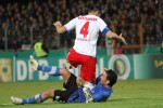 Eintracht Trier hat die erneute Pokalsensation verpasst. Am späten Dienstagabend unterlag der Viertligist dem Bundesligisten Hamburger SV mit 1:2 (1:0;1:1) nach Verlängerung. Gegen 23 Uhr jubelten die Hanseaten im mit 10.300 Zuschauern ausverkauften Moselstadion. Die Trierer ließen enttäuscht die Köpfe hängen, weil sie den Favoriten am Rande der Niederlage hatten. „Ja, wir sind alle sehr enttäuscht, es tut sehr weh“, sagte Roland Seitz. Triers Trainer zollte seiner Mannschaft hohes Lob: „Wir haben ein sensationelles Spiel für einen Viertligisten abgeliefert.“ Das konnte Thorsten Fink von seiner Elf nicht behaupten. „Ich bin einfach nur froh, dass wir die nächste Runde erreicht haben“, betonte der neue Hamburger Trainer.