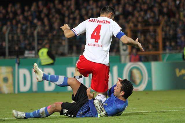 Die Sprechchöre der Hamburger Anhänger über “Super Hamburg” klangen nun eher wie Hohn denn wie Unterstützung. “Diesel Hamburg” hätte es eher getroffen. Gerade einmal 50 Pferdestärken, nur noch drei Zylinder, und ein fester Knoten in der Spritleitung – so präsentierte sich der Bundesligist über weite Strecken der ersten Halbzeit. Nichts kam von Hamburg, noch nicht einmal ein laues Lüftchen, geschweige denn eine steife Brise. Heiko Westermann, immerhin ehemaliger Internationaler, trug sein Trikot spazieren. David Jarolim kultivierte seine ohnehin chronische Fallsucht. Die Stürmer Marcus Berg und Heung Min Son waren nicht existent. Der 0:1-Rückstand zur Pause schmeichelte dem hohen Favoriten sogar noch.