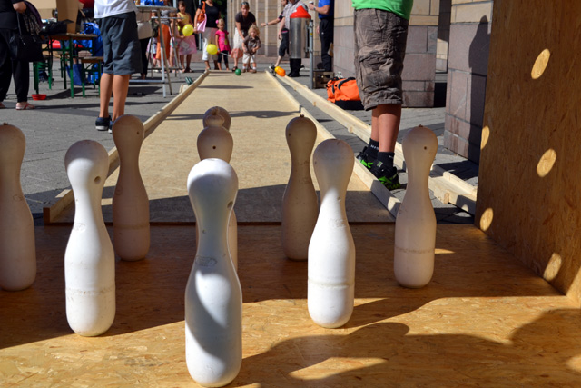 TRIER. Rasmus scheint nicht mehr zu bändigen: die einen rennen davon, andere verschanzen sich hinter Laternenmasten, manches Kind bricht vor Schreck in Tränen aus. Die meisten jedoch – ob jung oder alt – sind entzückt von dem grünen Wesen. Von der Leine gelassen, hat sein auf Stelzen laufender Dompteur indes einige Mühe, Rasmus wieder einzufangen. Am Samstagvormittag sorgten Christian Dirr und Uli Morissey vom Stelzentheater Circolo mit ihrem „Walk-Act“ für viel Heiterkeit in der Fußgängerzone. Dabei war die Stimmung ohnenhin bestens auf den Straßen und Plätzen der Stadt. Triers Zentrum war komplett in Kinderhand. Bei optimalem Wetter konnten die Jungen und Mädchen aus mehr als 100 unterschiedlichen Angeboten auswählen, die allesamt kostenfrei angeboten wurden. 16vor machte sich ein Bild von „Trier spielt“ – und bei der Gelegenheit auch ein paar Fotos.