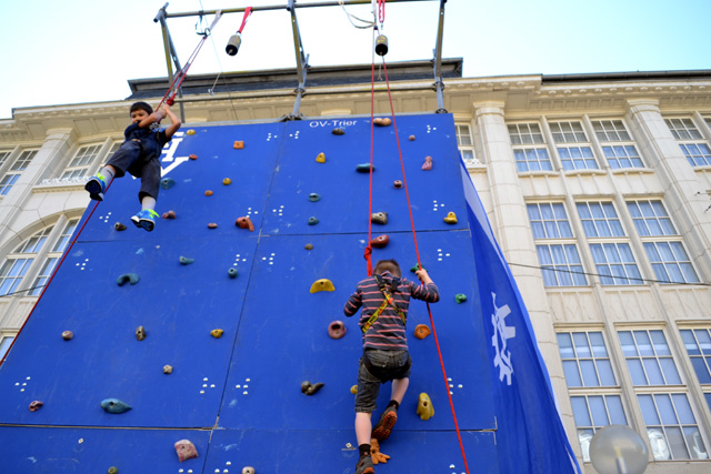 Einmal im Jahr, am zweiten Samstag im September, verwandelt sich die Stadt zum wahrscheinlich kinderfreundlichsten Ort der Großregion – dank „Trier spielt“. Weil auch das Wetter mitspielte, wurde die 15. Auflage des großen Spielfests zu einem vollen Erfolg. Tausende Kinder belagerten schon am Vormittag die Straßen und Plätze der Fußgängerzone, gingen auf dem Domfreihof beim Kettcup an den Start, kletteren Wände hoch oder versuchten sich als Nachwuchsreporter. Die City-Initiative Trier konnte nach eigenen Angaben auf rund 2.000 ehrenamtliche Helferinnen und Helfer bauen, die mit ihren Angeboten die Kinder den ganzen Tag über bespaßten.