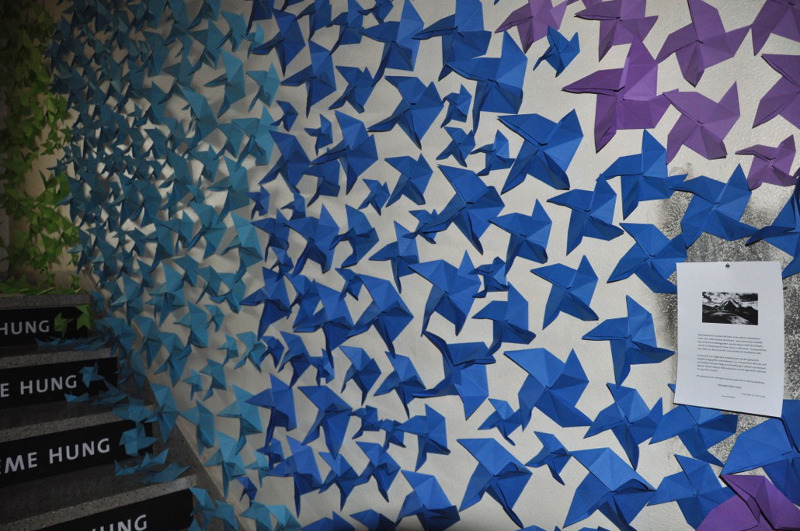 Die Studentin Kristina Lauxen beschäftigt sich im Rahmen ihrer Bachelor-Thesis mit Buddhismus und Meditation aus westlicher Sicht. Auf dem Speicher des Gebäudes zeigt sie zu diesem Thema Objekte und aufwendige Installationen, die den Besucher nicht nur zum Schauen, sondern auch zum aktiven Teilnehmen ermutigen. In der zweiten Etage präsentieren Anais Arzalie, Laura Battistella, Maria Ketelhaut und Sven Fuchs ihre Semesterarbeiten aus den Bereichen Kunst und Experimentelles Design.