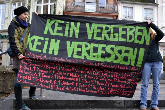 Zahlreiche Verbände sowie Parteien und Initiativen hatten zu der Veranstaltung aufgerufen, die unter dem Motto „Kein Vergeben, kein Vergessen“ stand. Die Kundgebung auf dem Porta-Nigra-Platz richtete sich auch gegen den Verfassungsschutz.