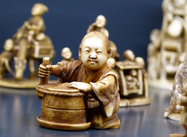 Detailaufnahme eines japanischen Netsukes. Foto: Stadtmuseum SimeonstiftDie filigran geschnitzten Elfenbeinfigürchen aus Japan, genannt „Netsuke“, gehören zu den beliebtesten Exponaten des Stadtmuseums: Die detaillierten Ausarbeitungen und die phantasievollen Gestaltungen faszinieren Kinder und Erwachsene gleichermaßen.