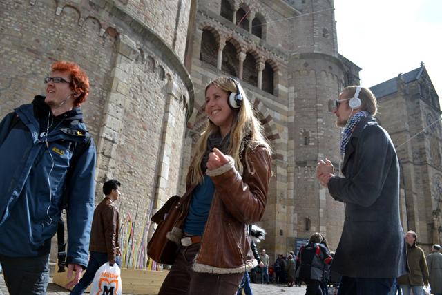Mit Kopfhörern auf den Ohren, also in der Art eines „Silent Dancing“, tanzten sie im Schatten der Bischofskirche und taten so auf entspannte Art ihren Unmut über die gesetzliche Regelung kund. Was das Tanzverbot über die Kar- und Ostertage anbelangt, gilt in Rheinland-Pfalz eine der bundesweit strengsten Regelungen. So dürfen ab Gründonnerstagmorgen, 4 Uhr, bis Ostersonntag, 16 Uhr, keine öffentlichen Tanzveranstaltungen ausgerichtet werden. Laut Trierer Rathaus zählen hierzu auch Veranstaltungsformate wie „Silent Dancing“ (wir berichteten).