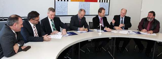 Im Beisein von Triers Oberbürgermeister Klaus Jensen, der auch SWT-Aufsichtsratsvorsitzender ist, unterzeichneten juwi-Vorstand Fred Jung und Dr. Olaf Hornfeck, Vorstandschef der Stadtwerke Trier, jetzt einen Konsortialvertrag. „Unser gemeinsames Ziel ist es, Projekte im Bereich der Windkraft in der Region zu entwickeln und umzusetzen. Aus diesem Grund möchten wir im Rahmen der Kooperation auch eine gemeinsame Projektentwicklungsgesellschaft gründen“, sagte Hornfeck im Rahmen eines kleinen Festaktes.